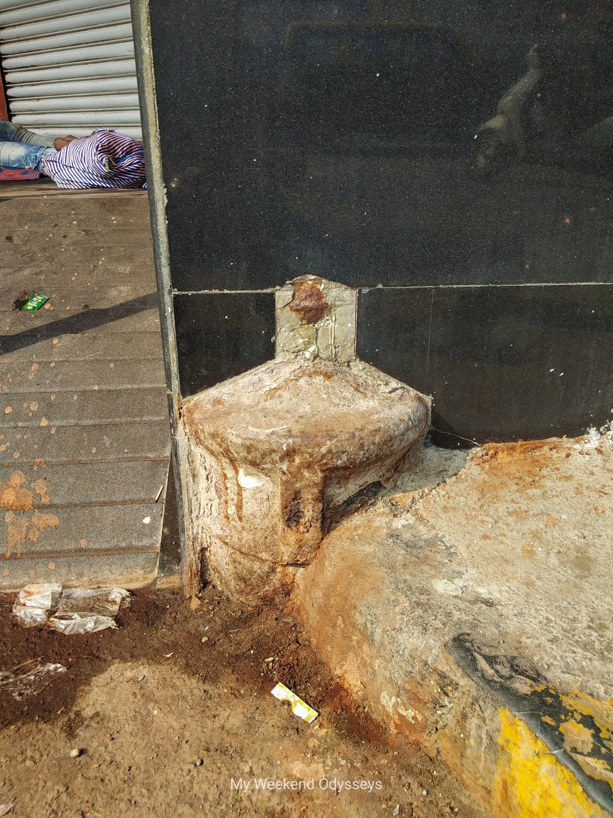 There is one more cannon which is hidden in a shanty. The shanty on the footpath lies between the police station and the small cause court. One of the person sitting in the cobbler shop was happy to show me the hidden cannon by lifting the side of shanty plastic cover. The person informed that they say that it was used to tie the ships / boats when sea used to touch here. That was more than 150 years ago !!